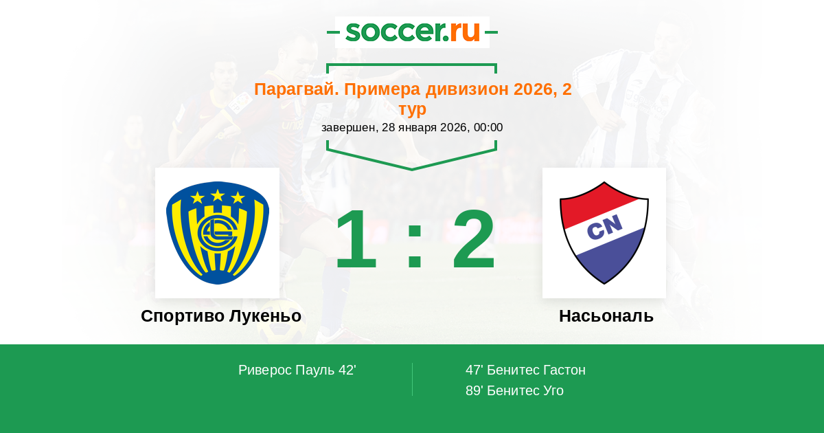 42' (1:0) Риверос Пауль (2) (Комас Лаутаро (37))