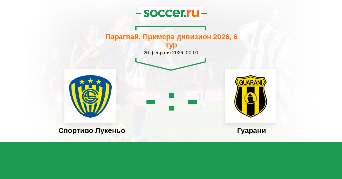 Парагвай. Примера дивизион 26.02.2023 Гуарани Логотип футбольный клуб Гуарани (Асунсьон) 3:1 Логотип футбольный клуб Спортиво Лукеньо Спортиво Лукеньо