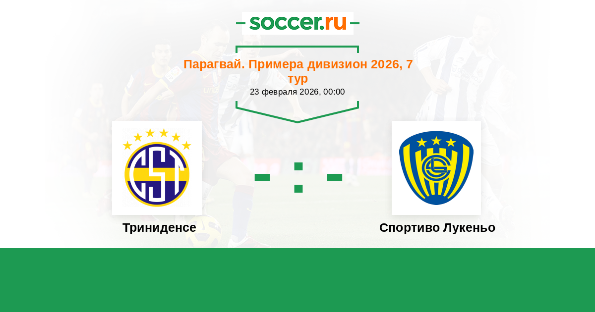 Парагвай. Второй дивизион 13.09.2022 Спортиво Лукеньо Логотип футбольный клуб Спортиво Лукеньо 0:0 Логотип футбольный клуб Триниденсе (Асунсьон) Триниденсе