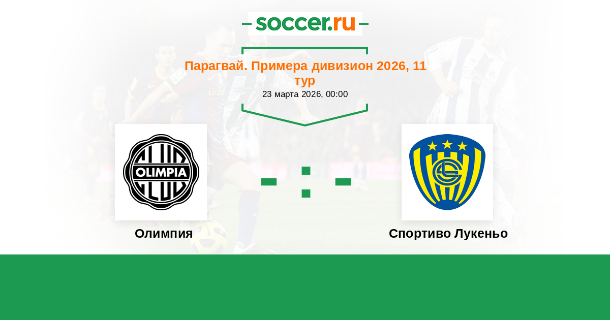 Парагвай. Примера дивизион 19.02.2018 Спортиво Лукеньо Логотип футбольный клуб Спортиво Лукеньо 2:2 Логотип футбольный клуб Олимпия (Асунсьон) Олимпия