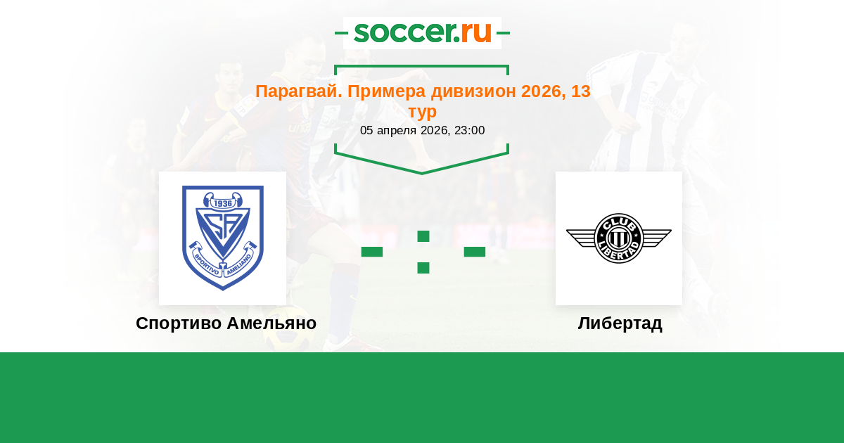 Парагвай. Примера дивизион 11.04.2023 Спортиво Амельяно Логотип футбольный клуб Спортиво Амельяно (Асунсьон) 2:5 Логотип футбольный клуб Либертад (Асунсьон) Либертад
