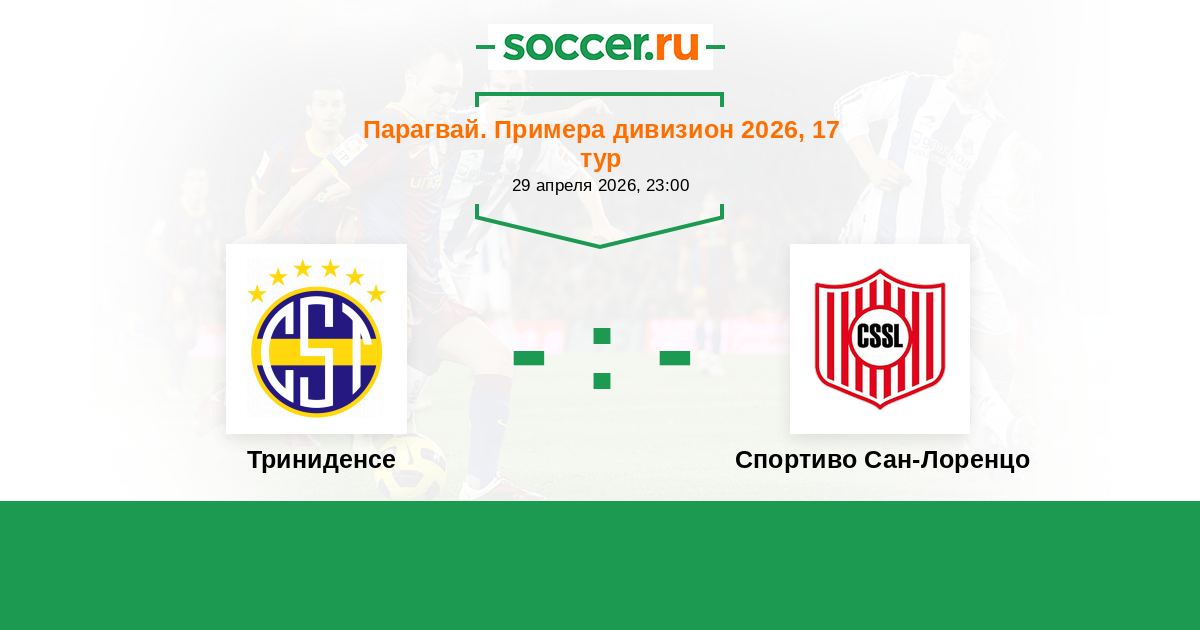 Парагвай. Второй дивизион 22.07.2018 Спортиво Сан-Лоренцо Логотип футбольный клуб Спортиво Сан-Лоренцо 1:1 Логотип футбольный клуб Триниденсе (Асунсьон) Триниденсе