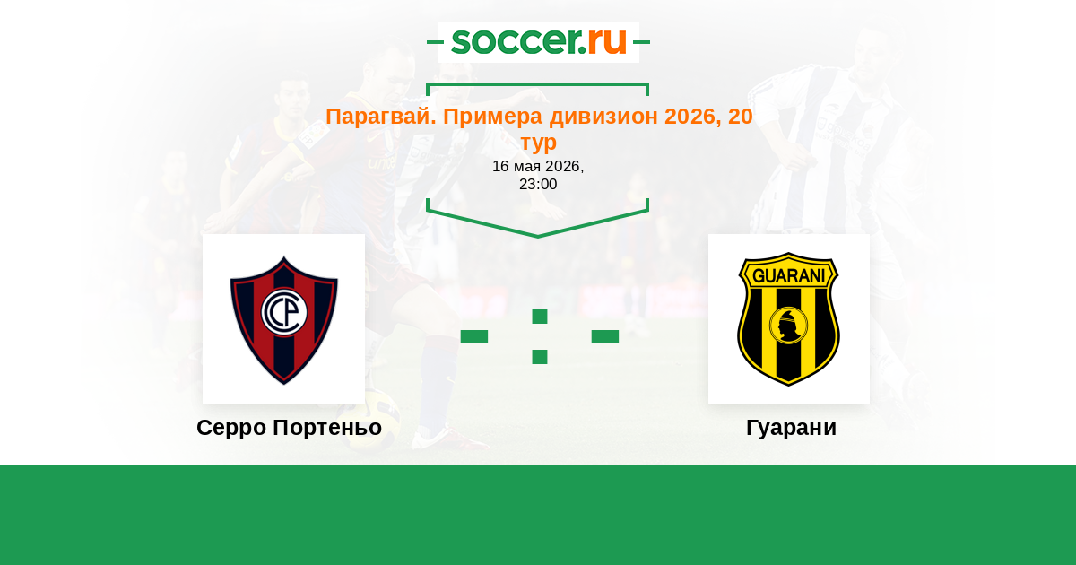Парагвай. Примера дивизион 26.01.2020 Гуарани Логотип футбольный клуб Гуарани (Асунсьон) 1:0 Логотип футбольный клуб Серро Портеньо (Асунсьон) Серро Портеньо