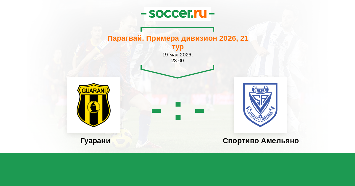 Парагвай. Примера дивизион 19.05.2025 Гуарани Логотип футбольный клуб Гуарани (Асунсьон) 1:3 Логотип футбольный клуб Спортиво Амельяно (Асунсьон) Спортиво Амельяно