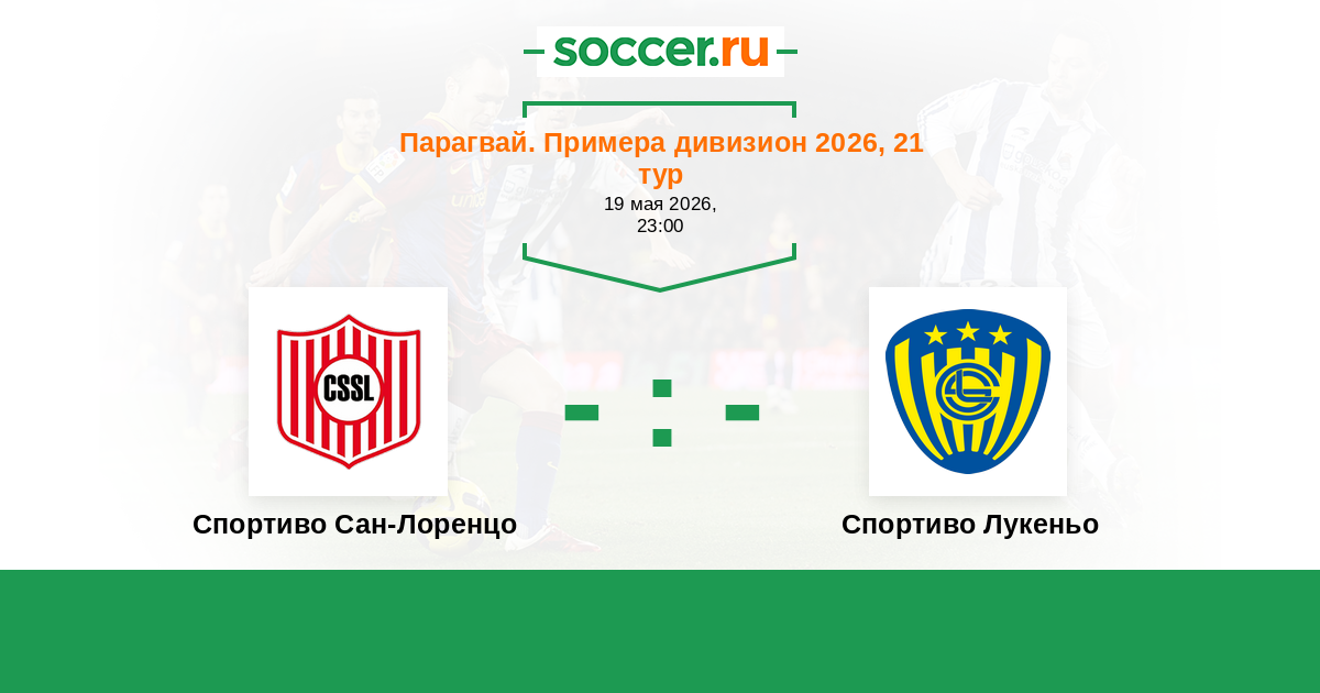 Парагвай. Примера дивизион 23.07.2019 Спортиво Лукеньо Логотип футбольный клуб Спортиво Лукеньо 1:3 Логотип футбольный клуб Спортиво Сан-Лоренцо Спортиво Сан-Лоренцо