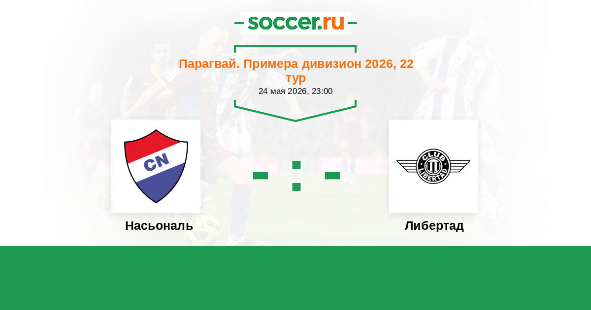 Парагвай. Примера дивизион 23.05.2022 Либертад Логотип футбольный клуб Либертад (Асунсьон) 1:0 Логотип футбольный клуб Насьональ (Асунсьон) Насьональ