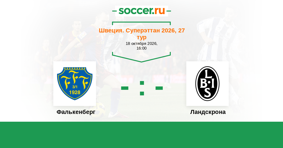 Швеция. Суперэттан 11.09.2018 Фалькенберг Логотип футбольный клуб Фалькенберг 1:2 Логотип футбольный клуб Ландскрона Ландскрона