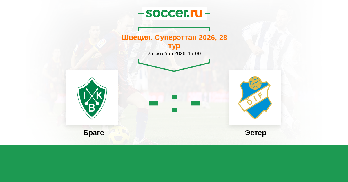 Швеция. Суперэттан 29.10.2023 Эстер Логотип футбольный клуб Эстер (Векше) 1:0 Логотип футбольный клуб Браге (Бурлэнге) Браге