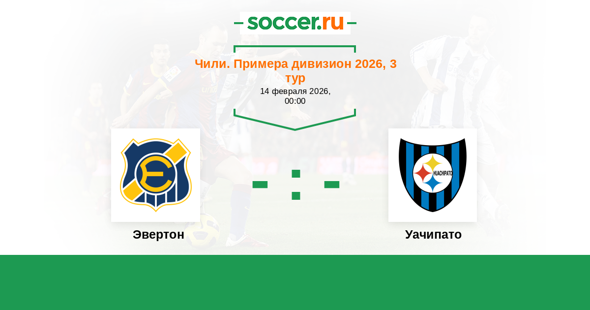 Чили. Примера дивизион 31.03.2018 Уачипато Логотип футбольный клуб Уачипато (Талькауано) 2:0 Логотип футбольный клуб Эвертон (Винья-дель-Мар) Эвертон