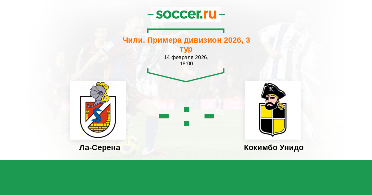 Чили. Примера дивизион 26.02.2022 Ла-Серена Логотип футбольный клуб Ла-Серена 1:1 Логотип футбольный клуб Кокимбо Унидо Кокимбо Унидо