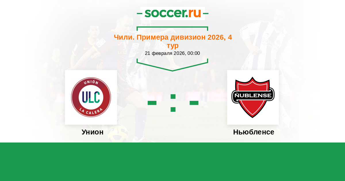 Чили. Примера дивизион 01.06.2021 Унион Логотип футбольный клуб Унион (Ла Калера) 1:0 Логотип футбольный клуб Ньюбленсе (Чильян) Ньюбленсе