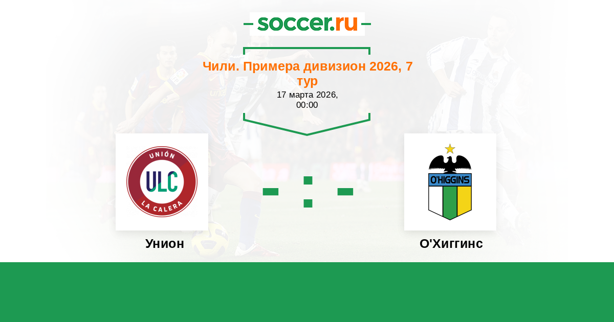 Чили. Примера дивизион 07.04.2024 Унион Логотип футбольный клуб Унион (Ла Калера) 2:3 Логотип футбольный клуб О'Хиггинс (Ранкагуа) О'Хиггинс