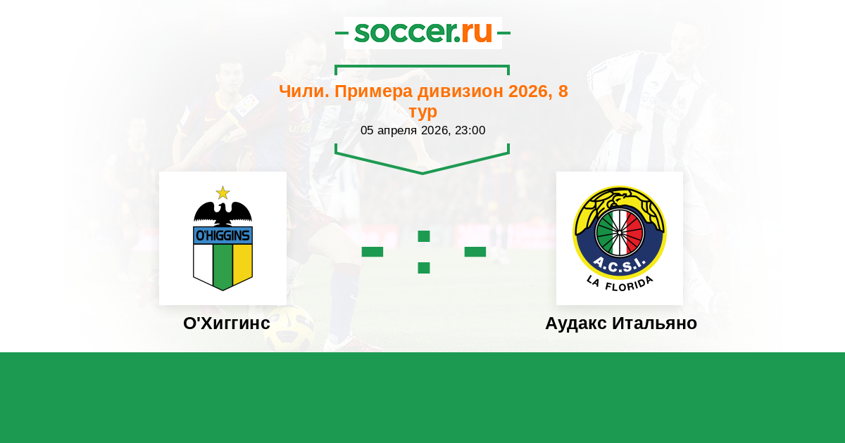 Чили. Примера дивизион 17.03.2019 Аудакс Итальяно Логотип футбольный клуб Аудакс Итальяно (Сантьяго) 2:2 Логотип футбольный клуб О'Хиггинс (Ранкагуа) О'Хиггинс