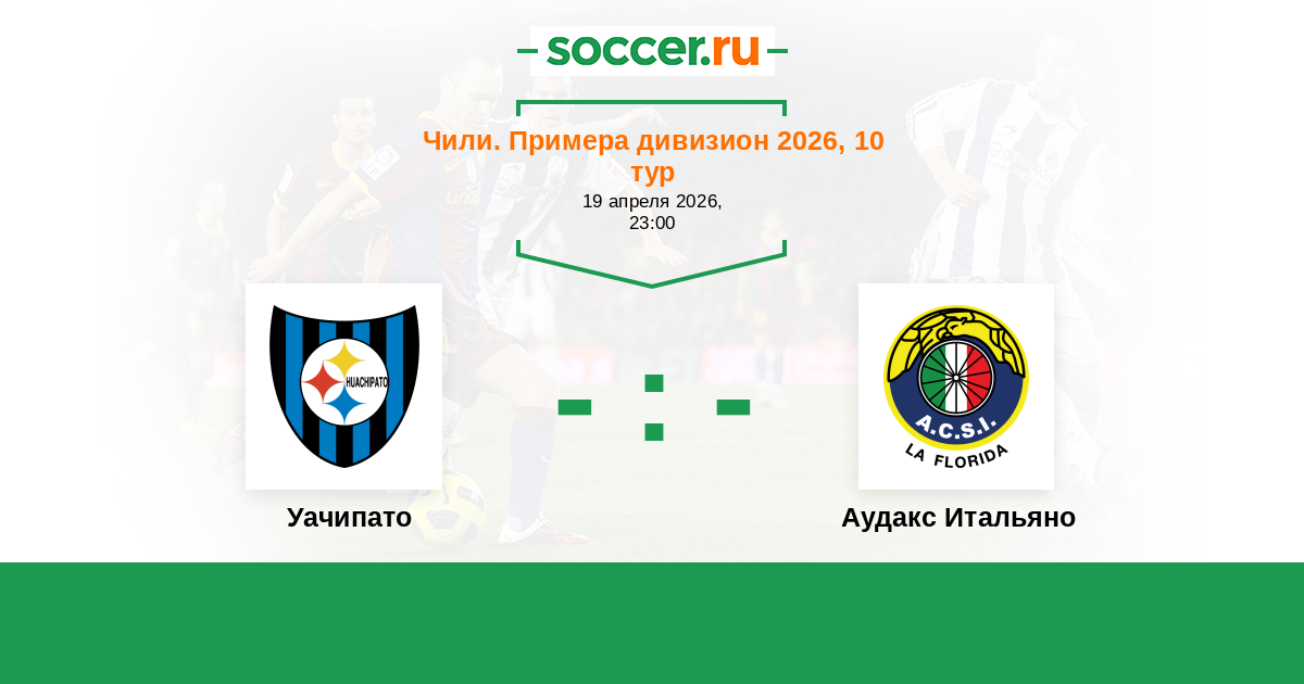Чили. Примера дивизион 06.08.2017 Уачипато Логотип футбольный клуб Уачипато (Талькауано) 2:1 Логотип футбольный клуб Аудакс Итальяно (Сантьяго) Аудакс Итальяно