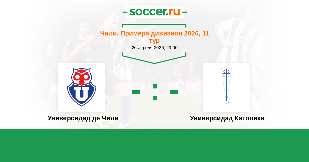 Чили. Примера дивизион 03.04.2022 Универсидад Католика Логотип футбольный клуб Универсидад Католика (Сантьяго) 2:1 Логотип футбольный клуб Универсидад де Чили (Сантьяго) Универсидад де Чили
