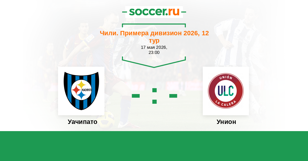 Чили. Примера дивизион 20.03.2018 Уачипато Логотип футбольный клуб Уачипато (Талькауано) 2:0 Логотип футбольный клуб Унион (Ла Калера) Унион