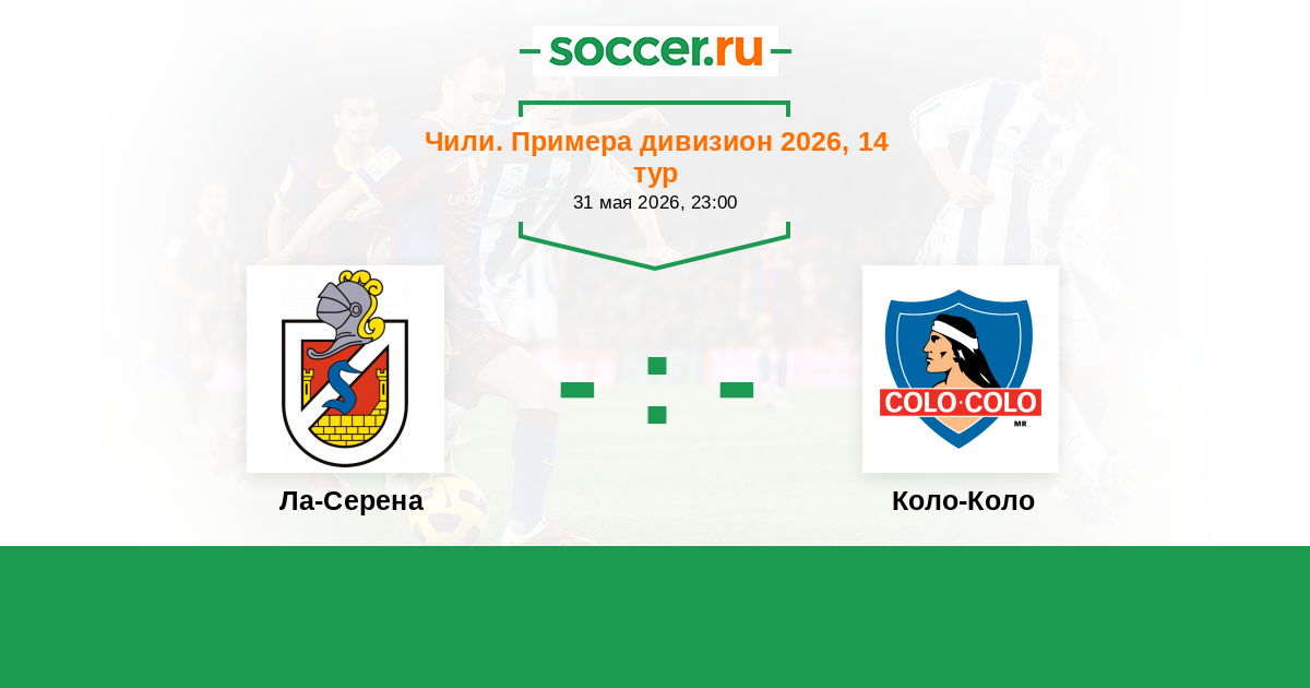 Чили. Примера дивизион 07.06.2021 Коло-Коло Логотип футбольный клуб Коло-Коло (Сантьяго) 2:0 Логотип футбольный клуб Ла-Серена Ла-Серена