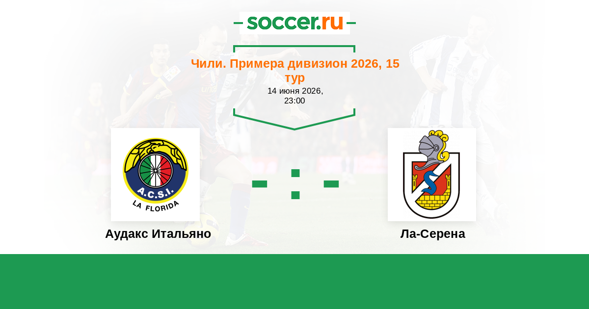 Чили. Примера дивизион 26.08.2021 Ла-Серена Логотип футбольный клуб Ла-Серена 0:2 Логотип футбольный клуб Аудакс Итальяно (Сантьяго) Аудакс Итальяно