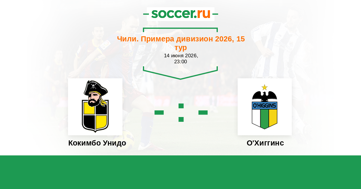 Чили. Примера дивизион 14.09.2024 О'Хиггинс Логотип футбольный клуб О'Хиггинс (Ранкагуа) 1:1 Логотип футбольный клуб Кокимбо Унидо Кокимбо Унидо