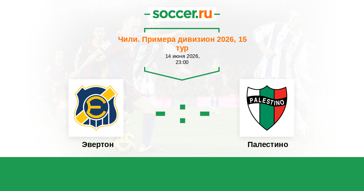 Чили. Примера дивизион 14.04.2018 Палестино Логотип футбольный клуб Палестино (Сантьяго) 2:1 Логотип футбольный клуб Эвертон (Винья-дель-Мар) Эвертон