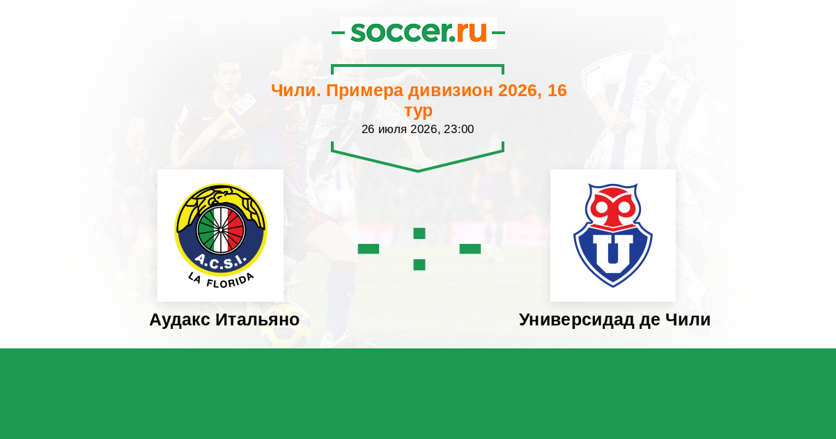 Чили. Примера дивизион 17.08.2025 Универсидад де Чили Логотип футбольный клуб Универсидад де Чили (Сантьяго) 1:3 Логотип футбольный клуб Аудакс Итальяно (Сантьяго) Аудакс Итальяно