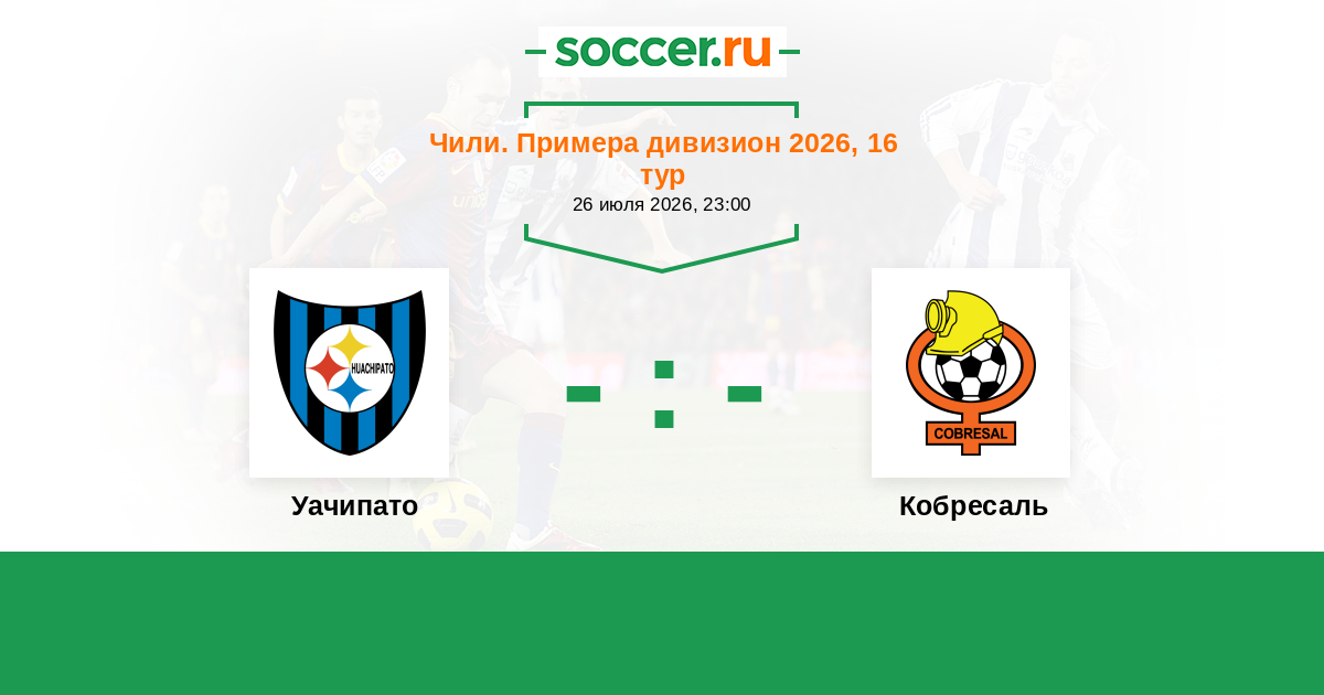 Чили. Примера дивизион 03.04.2022 Уачипато Логотип футбольный клуб Уачипато (Талькауано) 1:0 Логотип футбольный клуб Кобресаль (Эль-Сальвадор) Кобресаль