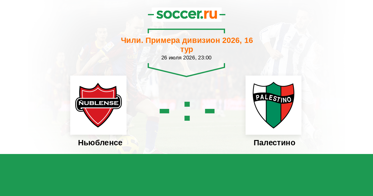 Чили. Примера дивизион 10.04.2022 Палестино Логотип футбольный клуб Палестино (Сантьяго) 1:1 Логотип футбольный клуб Ньюбленсе (Чильян) Ньюбленсе