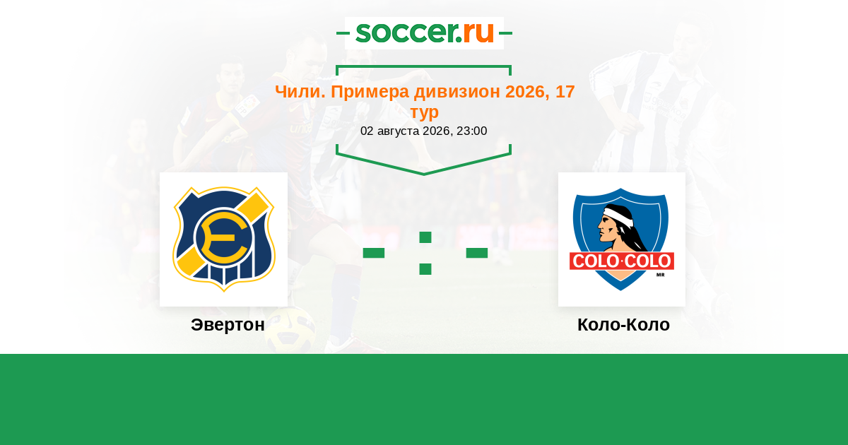 Чили. Примера дивизион 15.09.2021 Коло-Коло Логотип футбольный клуб Коло-Коло (Сантьяго) 2:0 Логотип футбольный клуб Эвертон (Винья-дель-Мар) Эвертон