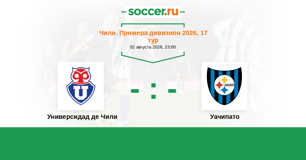 Чили. Примера дивизион 20.08.2017 Универсидад де Чили Логотип футбольный клуб Универсидад де Чили (Сантьяго) 3:2 Логотип футбольный клуб Уачипато (Талькауано) Уачипато