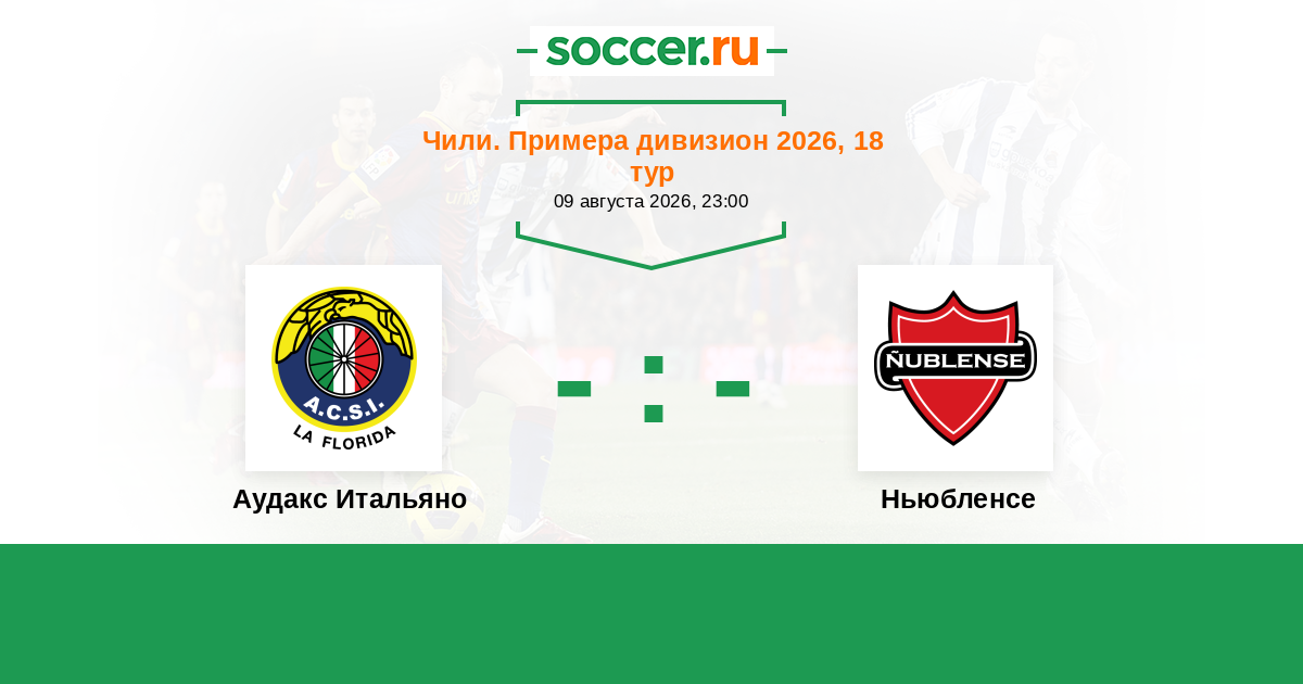 Чили. Примера дивизион 08.06.2021 Ньюбленсе Логотип футбольный клуб Ньюбленсе (Чильян) 1:0 Логотип футбольный клуб Аудакс Итальяно (Сантьяго) Аудакс Итальяно