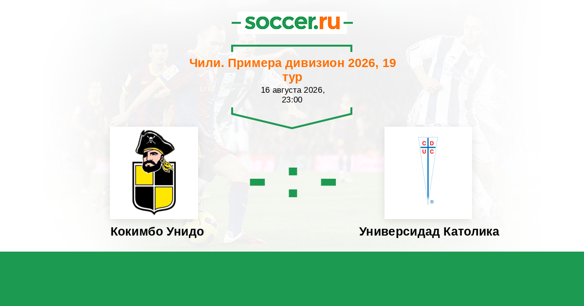Чили. Примера дивизион 05.09.2020 Универсидад Католика Логотип футбольный клуб Универсидад Католика (Сантьяго) 4:1 Логотип футбольный клуб Кокимбо Унидо Кокимбо Унидо