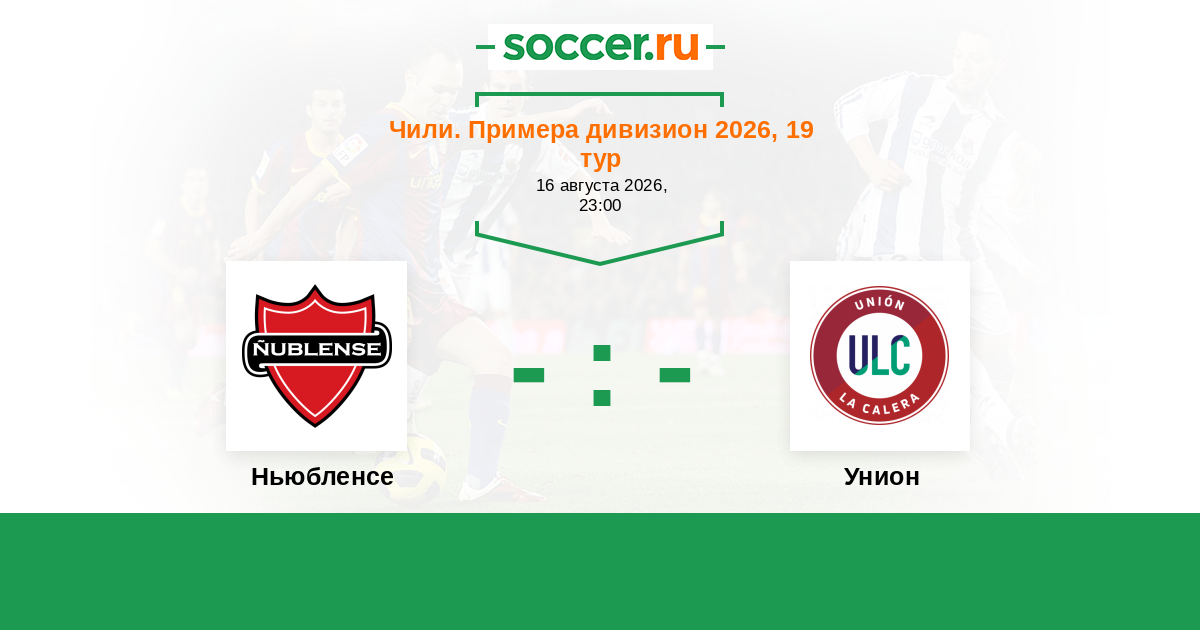 Чили. Примера дивизион 15.08.2023 Ньюбленсе Логотип футбольный клуб Ньюбленсе (Чильян) 1:1 Логотип футбольный клуб Унион (Ла Калера) Унион