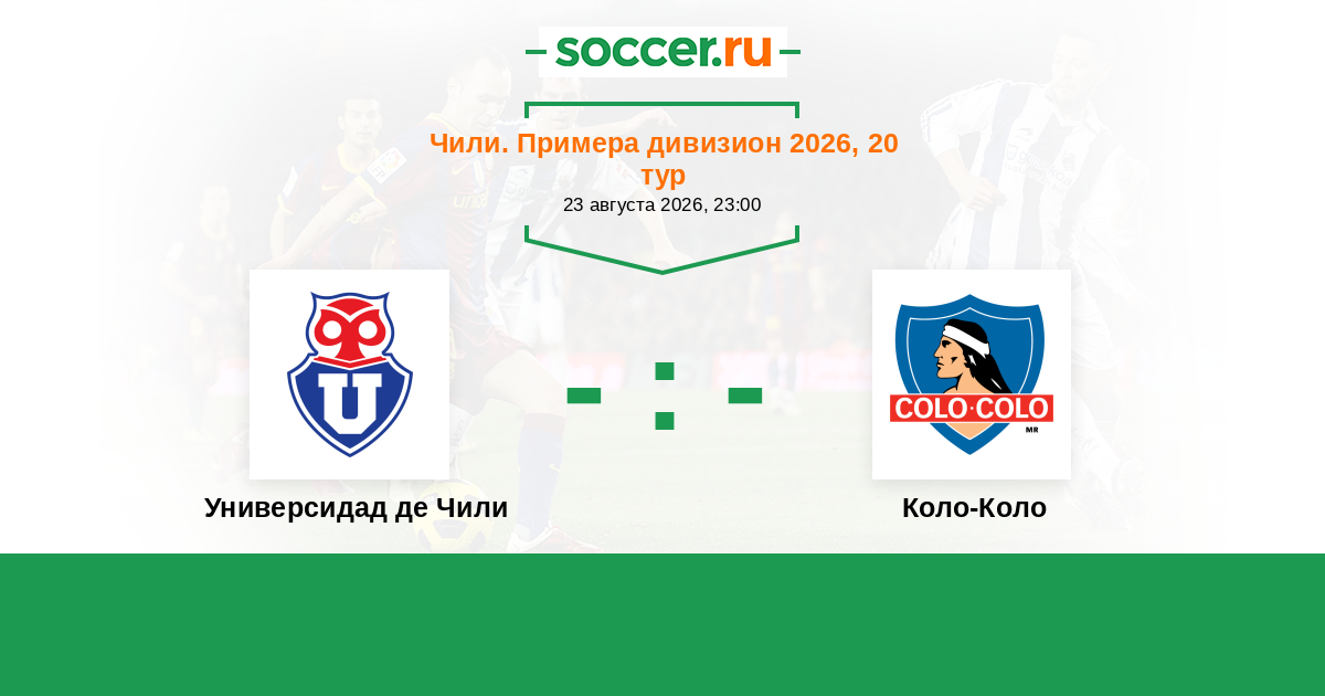 Чили. Примера дивизион 06.03.2022 Коло-Коло Логотип футбольный клуб Коло-Коло (Сантьяго) 4:1 Логотип футбольный клуб Универсидад де Чили (Сантьяго) Универсидад де Чили