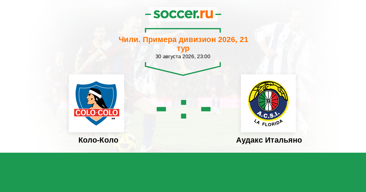 Чили. Примера дивизион 25.07.2021 Коло-Коло Логотип футбольный клуб Коло-Коло (Сантьяго) 1:1 Логотип футбольный клуб Аудакс Итальяно (Сантьяго) Аудакс Итальяно