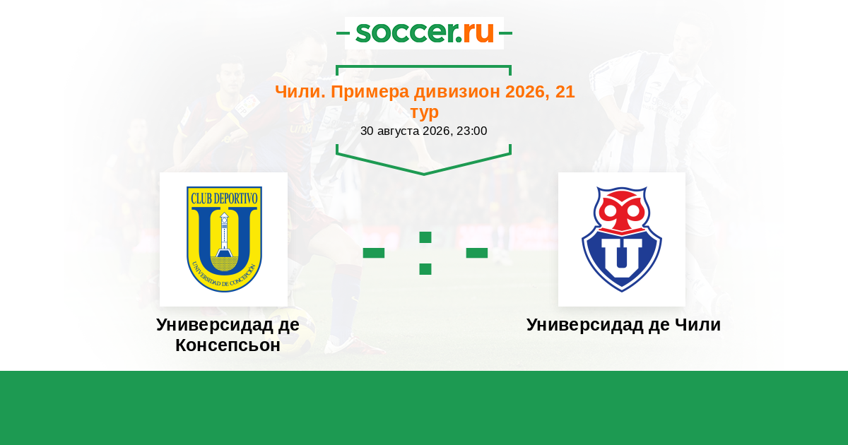 Чили. Примера дивизион 21.07.2007 Универсидад де Консепсьон Логотип футбольный клуб Универсидад де Консепсьон 1:1 Логотип футбольный клуб Универсидад де Чили (Сантьяго) Универсидад де Чили