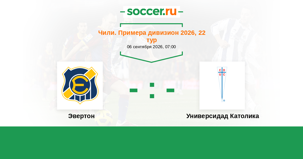 Чили. Примера дивизион 23.08.2021 Универсидад Католика Логотип футбольный клуб Универсидад Католика (Сантьяго) 2:0 Логотип футбольный клуб Эвертон (Винья-дель-Мар) Эвертон
