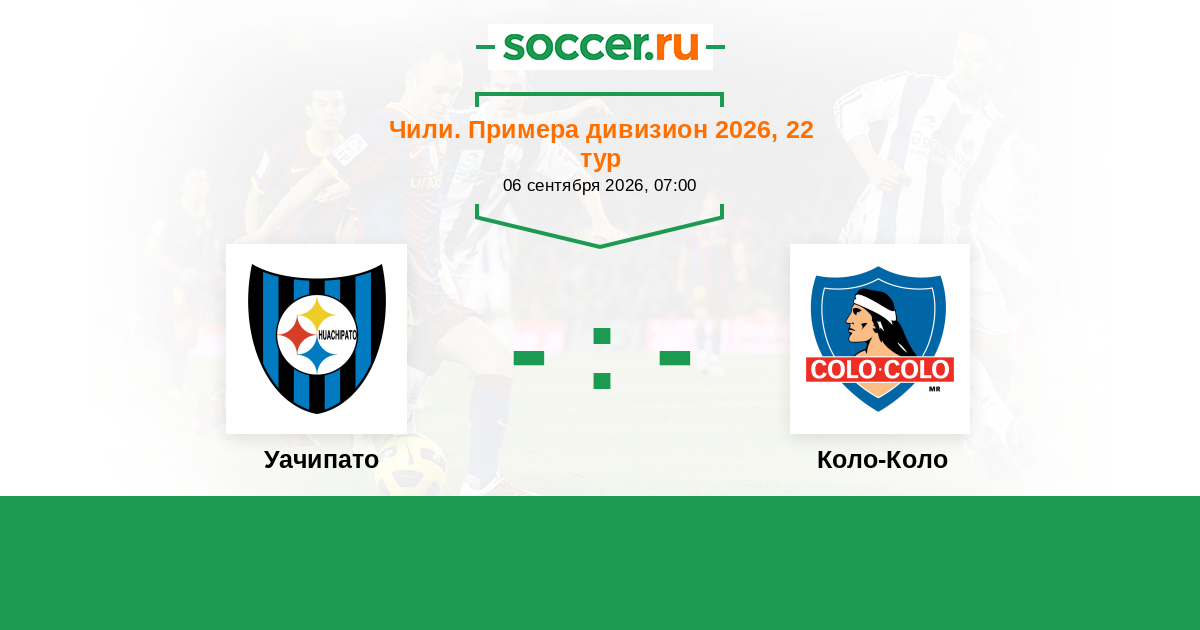 Чили. Примера дивизион 24.07.2022 Коло-Коло Логотип футбольный клуб Коло-Коло (Сантьяго) 1:0 Логотип футбольный клуб Уачипато (Талькауано) Уачипато