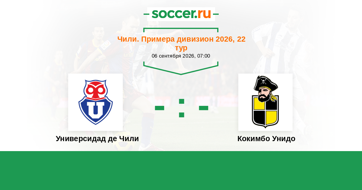 Чили. Примера дивизион 07.09.2022 Универсидад де Чили Логотип футбольный клуб Универсидад де Чили (Сантьяго) 0:0 Логотип футбольный клуб Кокимбо Унидо Кокимбо Унидо