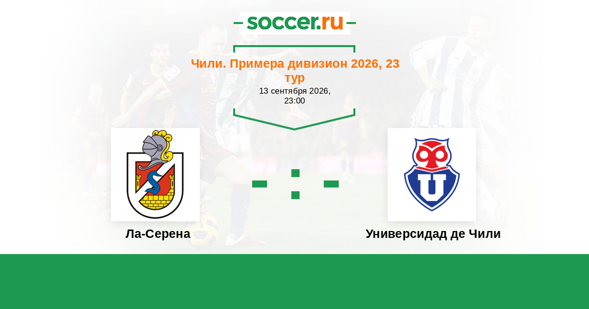 Чили. Примера дивизион 11.04.2021 Ла-Серена Логотип футбольный клуб Ла-Серена 0:0 Логотип футбольный клуб Универсидад де Чили (Сантьяго) Универсидад де Чили