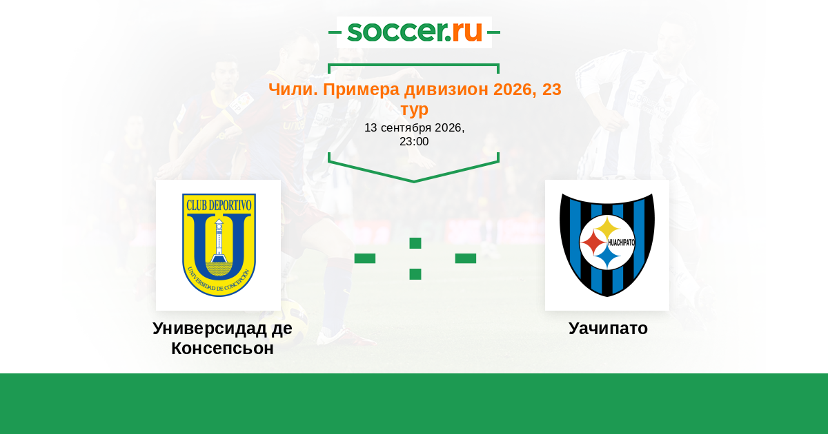 Чили. Примера дивизион 23.04.2017 Уачипато Логотип футбольный клуб Уачипато (Талькауано) 0:0 Логотип футбольный клуб Универсидад де Консепсьон Универсидад де Консепсьон