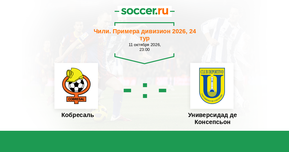 Чили. Примера дивизион 01.10.2011 Универсидад де Консепсьон Логотип футбольный клуб Универсидад де Консепсьон 0:0 Логотип футбольный клуб Кобресаль (Эль-Сальвадор) Кобресаль