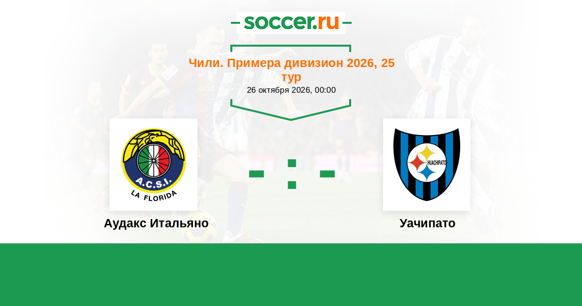 Чили. Примера дивизион 25.10.2021 Уачипато Логотип футбольный клуб Уачипато (Талькауано) 0:0 Логотип футбольный клуб Аудакс Итальяно (Сантьяго) Аудакс Итальяно