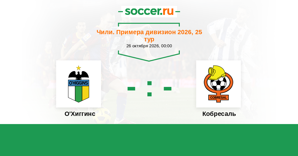 Чили. Примера дивизион 17.08.2025 О'Хиггинс Логотип футбольный клуб О'Хиггинс (Ранкагуа) 1:0 Логотип футбольный клуб Кобресаль (Эль-Сальвадор) Кобресаль