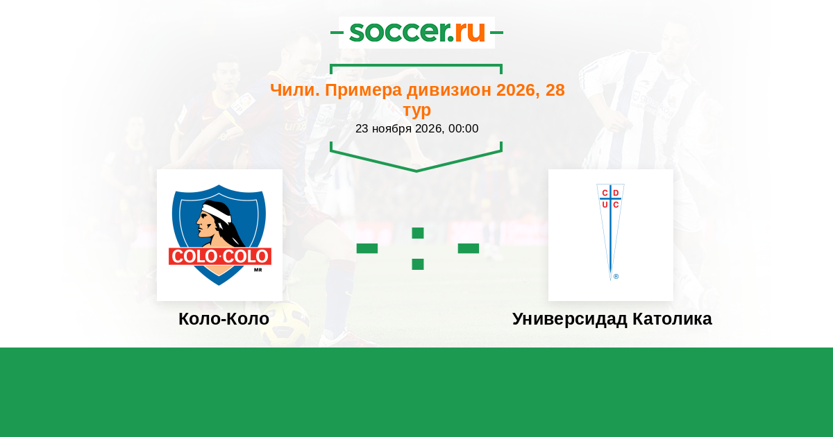 Чили. Примера дивизион 05.10.2022 Коло-Коло Логотип футбольный клуб Коло-Коло (Сантьяго) 0:0 Логотип футбольный клуб Универсидад Католика (Сантьяго) Универсидад Католика