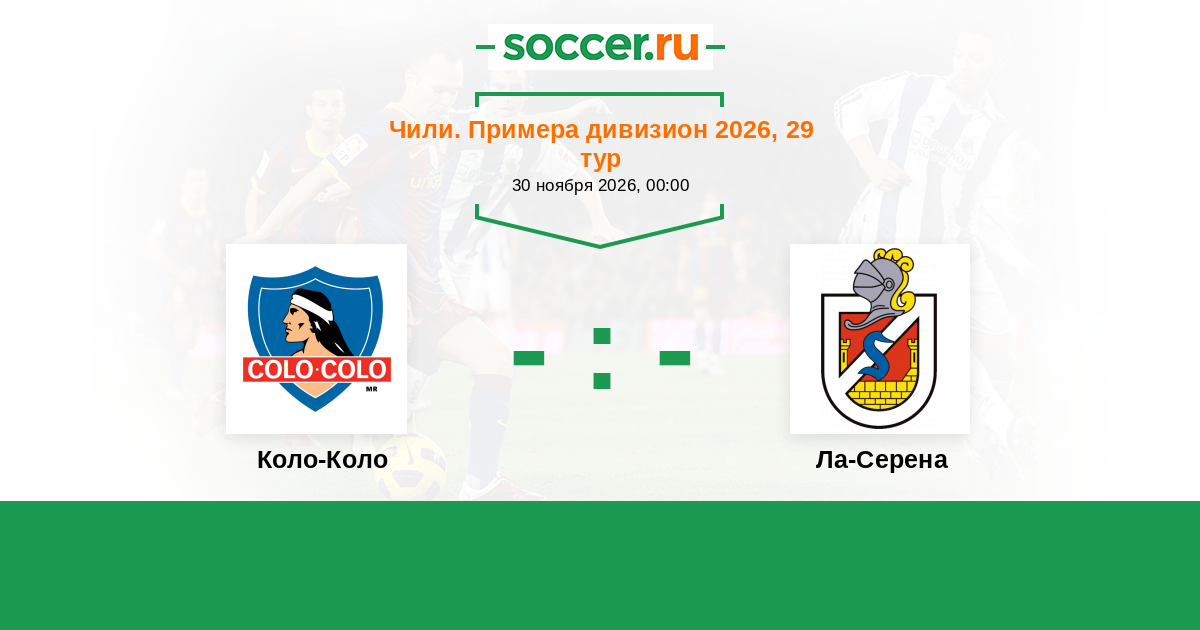 Чили. Примера дивизион 20.10.2021 Ла-Серена Логотип футбольный клуб Ла-Серена 1:4 Логотип футбольный клуб Коло-Коло (Сантьяго) Коло-Коло