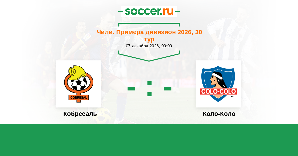 Чили. Примера дивизион 18.04.2022 Коло-Коло Логотип футбольный клуб Коло-Коло (Сантьяго) 2:1 Логотип футбольный клуб Кобресаль (Эль-Сальвадор) Кобресаль