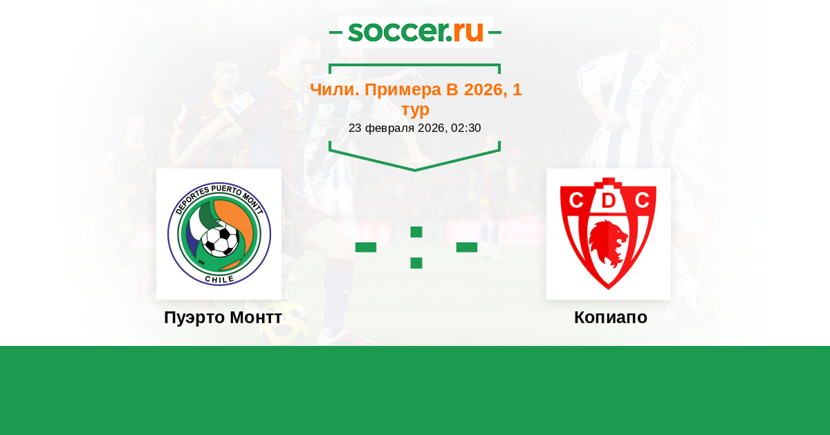 Чили. Примера В 26.02.2018 Копиапо Логотип футбольный клуб Копиапо 1:0 Логотип футбольный клуб Пуэрто Монтт Пуэрто Монтт