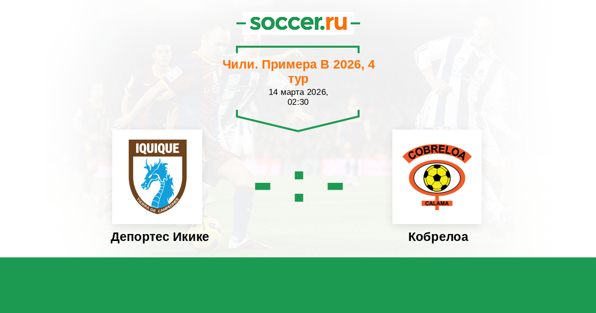 Чили. Примера В 04.05.2023 Кобрелоа Логотип футбольный клуб Кобрелоа (Калама) 1:0 Логотип футбольный клуб Депортес Икике Депортес Икике