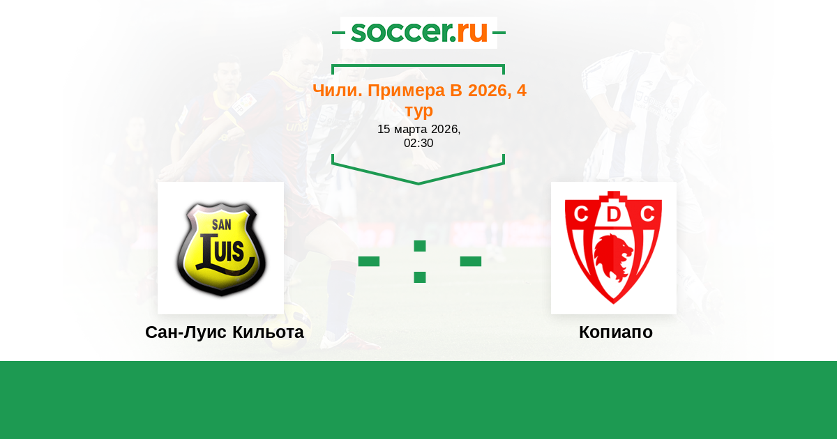 Чили. Примера В 11.04.2014 Сан-Луис Кильота Логотип футбольный клуб Сан-Луис Кильота 2:0 Логотип футбольный клуб Копиапо Копиапо