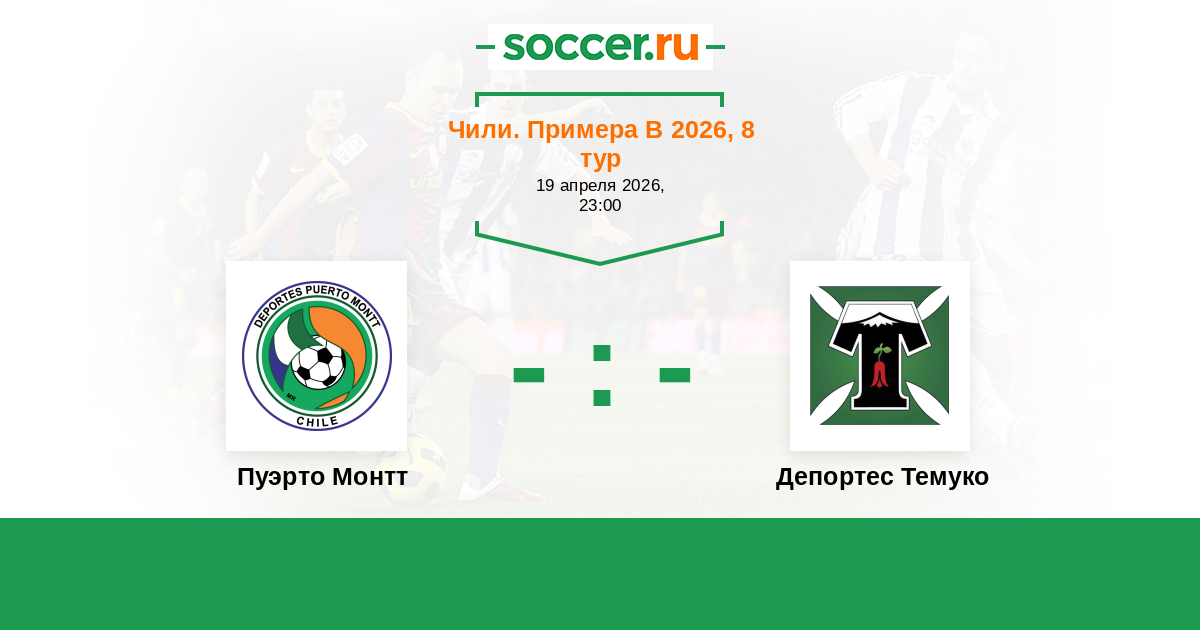 Чили. Примера В 23.03.2022 Пуэрто Монтт Логотип футбольный клуб Пуэрто Монтт 3:0 Логотип футбольный клуб Депортес Темуко Депортес Темуко